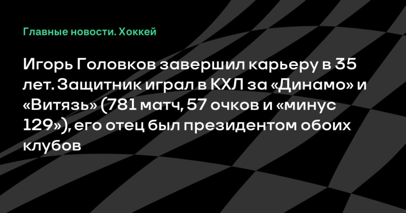 Игорь Головков завершил карьеру в 35 лет.