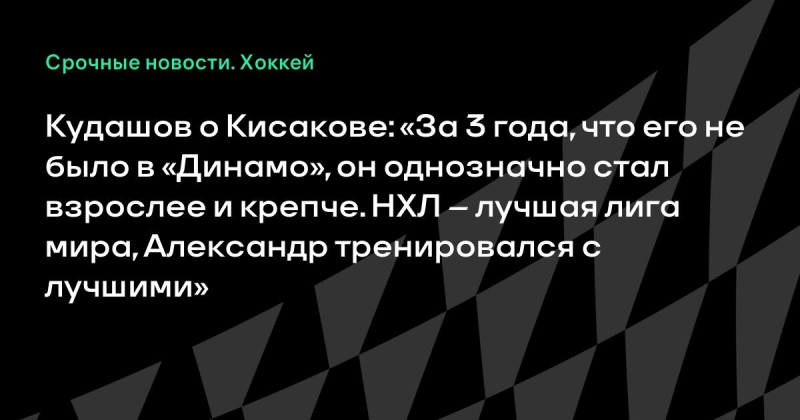 Кисаков за последние три года, что его не было в «Динамо», однозначно стал взрослее и крепче. НХЛ – лучшая лига в мире. Соответственно, Александр тренировался с лучшими. Дальше все будет зависеть от того, как он будет работать и вливаться в коллектив», – сообщил главный тренер бело-голубых.