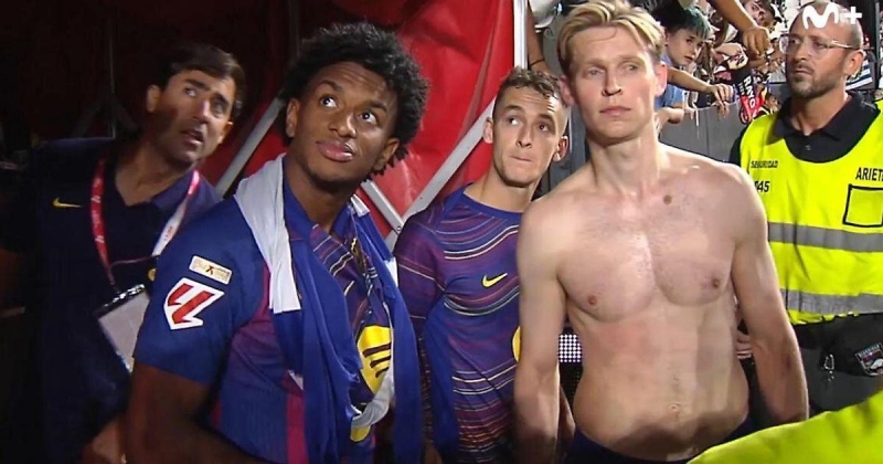 Услышав это, де Йонг кивнул болельщику и увел других игроков «Барсы».