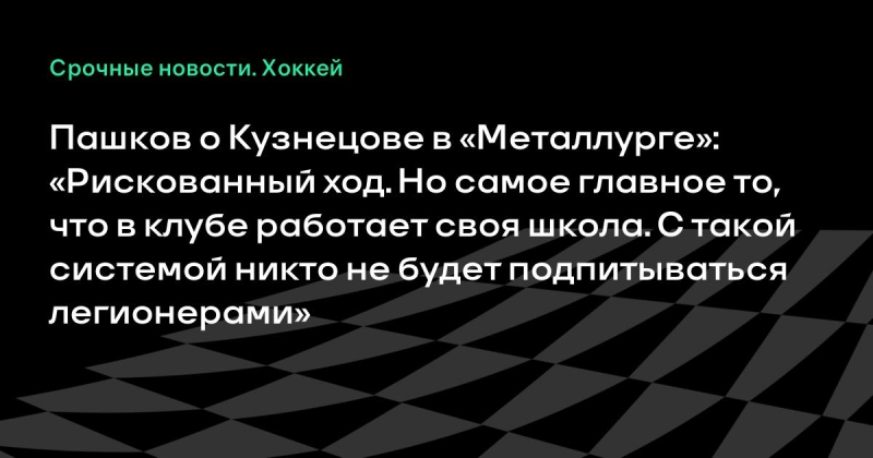 Александр Пашков назвал приглашение Евгения Кузнецова риском для «Металлурга».