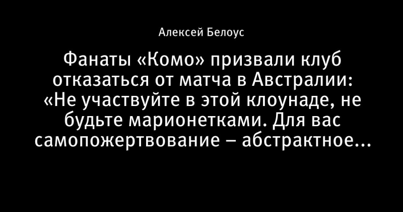 Фанаты «Комо» выступили против проведения матча в Австралии.