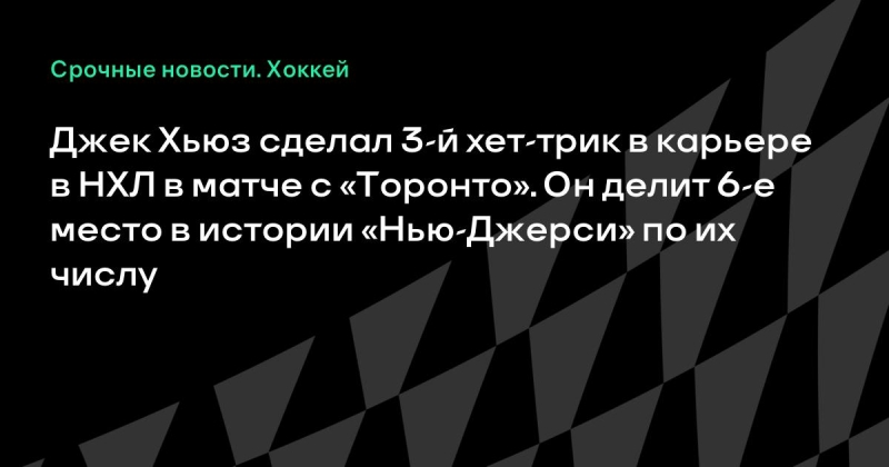 Джек Хьюз сделал 3-й хет-трик в НХЛ в матче с «Торонто».