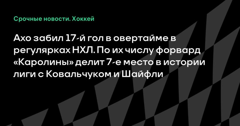 Гол в овертайме (в регулярках) стал для Ахо 17-м за карьеру в лиге. По их числу он делит 7-е место в истории с Ильей Ковальчуком и Марком Шайфли («Виннипег»).