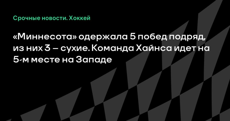 «Миннесота» одержала 5 побед подряд, из них 3 – сухие.