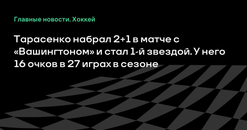 Владимир Тарасенко набрал 2+1 в матче с «Вашингтоном» и стал 1-й звездой.