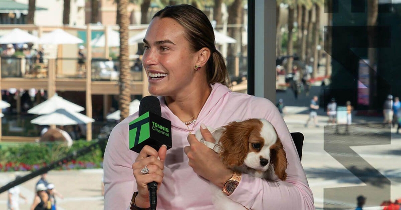 Позже Соболенко также взяла собаку с собой на интервью Tennis Channel.