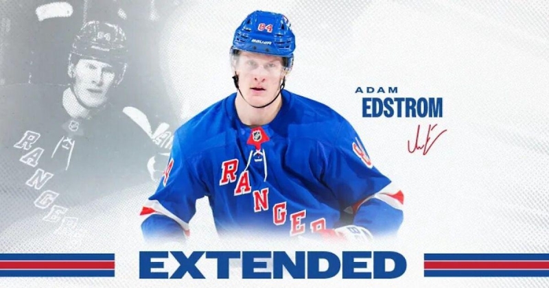 «Рейнджерс» продлили Адама Эдстрема на 2 года, кэпхит – 975 тысяч долларов.